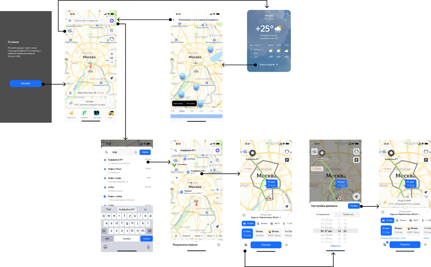 Путь пользователя разработан с учетом ограничений текущего функционала Яндекс карт.